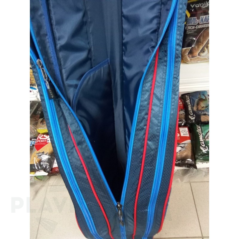Полужесткий чехол Волжанка Про Спорт 3+3. Имеются 3 отсека, в каждый из которых помещается пара удилищ. Одно с транспортной длиной 140 см, другое 160 см. Короткое удилище крепится в специальный кармашек, расположенный выше другого. Благодаря этому, удилища с собранными катушками не оказывают друг на друга механического воздействия. Усиленные молнии обеспечат долгую эксплуатацию. Удобный плечевой ремень имеет мягкую вставку, и регулируется по длине. Основание чехла обшито плотным непромокаемым материалом.