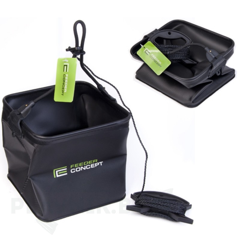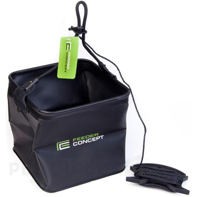 Емкость для набора воды с мостка или высокого берега водоема. Легкая,складывается. Оснащена веревкой и ручкой-мотовилом. Может служить для приготовления (замачивания, смешивания) прикормок в процессе рыбалки.