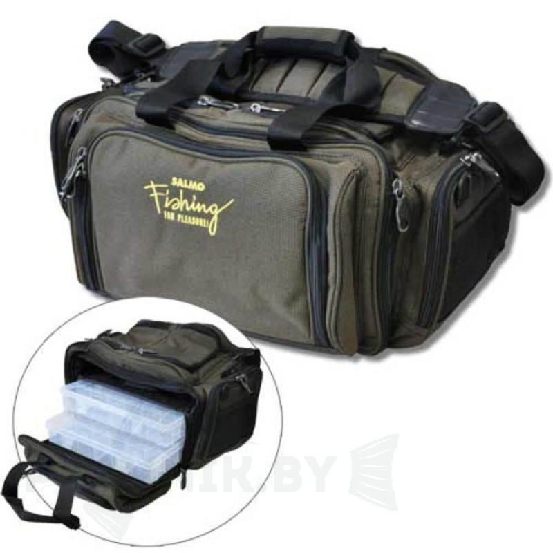 Сумка рыболовная Salmo H-3510 - это удобная сумка для рыболовных принадлежностей, изготовленная из водостойкого полиэстера 300D PVC с технологией Rip-Stop (материал имеет повышенную прочность, без увеличения веса) и нейлона 420D PU. В сумке имеются два специальных отделения для катушек и отделение для коробок, а также многочисленные карманы, закрываемые молниями. В комплект входят две пластиковых коробки, размером 35 х 22 х 5 (см). Дно подшито искусственной кожей.