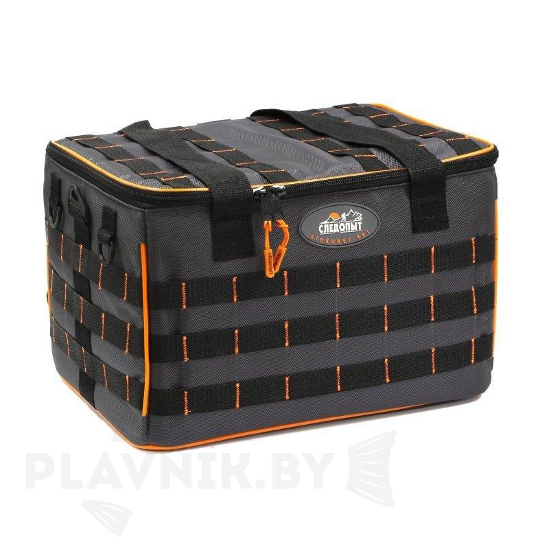 Представленная здесь сумка от фирмы Следопыт вместит в себя необходимые рыболову принадлежности, благодаря своей продуманной форме. Base Lure Bag XL уже укомплектована сразу пятью кейсами из пластмассы, в которых рыболов может собрать весь свой арсенал приманок и оснастки. Чтобы инструменты не занимали много места в сумке, их можно повесить снаружи на специально предусмотренных креплениях.