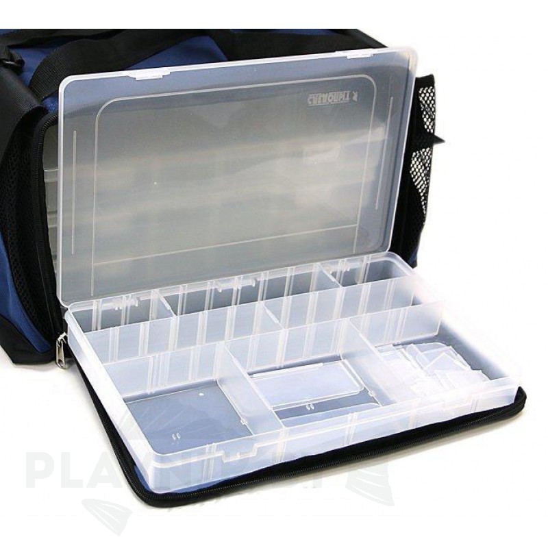 Сумка комплектуется 5-ю коробками. В каждой коробке по 2 отделения габаритами 34,5 х 4,5 х 4,3 см и 1 отделением габаритами 34,5 х 12 х 4,3 см. Каждая коробка комплектуется 25-ю съемными разграничителями.