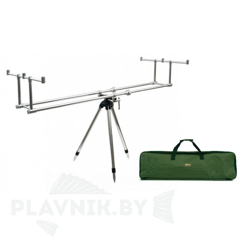 Подставка для удилищ rod pod carp (род под карп) применяют при ловле трофейного карпа. Также подойдет для рыбалки и на другие виды донных рыб. Устанавливать на подставку рекомендовано специальные карповые удилища горизонтально. Сигнализатор поклевки предусмотрено устанавливать во второе дополнительное крепление. Подставка легкая, прочная, мобильная, комплектуется чехлом для переноски.
