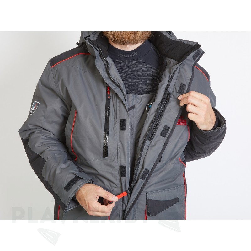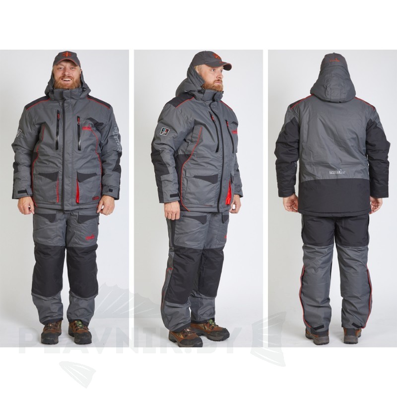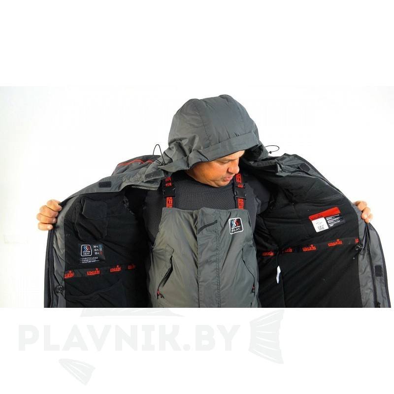 Эксплуатация до температуры -40°С. Мембранная ткань. Проклеенные швы. Система электрического обогрева — HEAT SYSTEM. Нагревательные элементы находятся в полукомбинезоне в районе поясницы и бедер. Подсоединение к аккумуляторной батарее через USB—разъем в кармане полукомбинезона. Минимальные параметры батареи Power Bank (в комплект не входит) — 2,1 Ач, 5-12 вольт. Костюм можно чистить в химчистке, специализирующейся на одежде из мембранных тканей. Сумка для переноски и хранения.