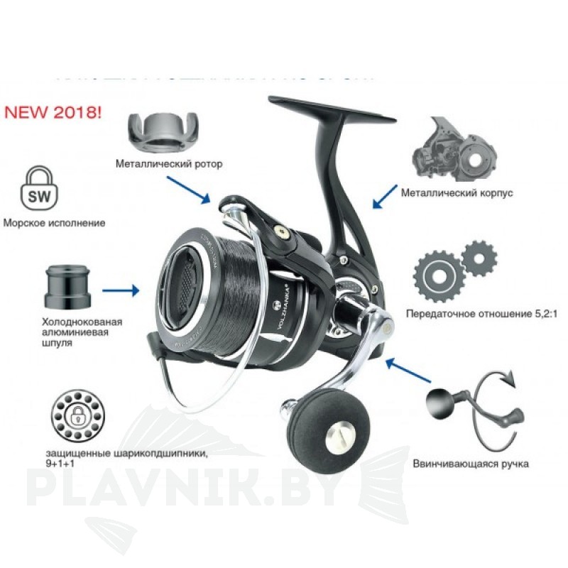 Безынерционная катушка Volzhanka Pro Sport предназначена для спиннинговой и фидерной ловли. В размерах 4004 и 5005 она способна работать с кормушками весом до 90-100 грамм. Катушка изготавливается на самом современном и точном оборудовании, произведенном в Японии. Эта модель вобрала в себя все лучшие технические решения. Ведущая шестерня, вал, на котором она запрессована, а так же шестерня привода штока изготовлены из качественной нержавеющей стали. Ведомая шестерня (латунь) установлена в корпусе на двух шарикоподшипниках. Ротор катушки изготовлен из алюминиевого сплава и максимально облегчен за счет фрезеровки. Для улучшения баланса механизм закрытия лесоукладывателя разнесен по разным плечам ротора. Шпуля выполнена из алюминиевого сплава; два шарикоподшипника с плотной посадкой, обеспечивают плавное стравливание лески и сводят до «нуля» люфты в её соединении со штоком. Фетровые фрикционные прокладки обеспечивают плавную работу тормоза под нагрузками. Ввинчивающая ручка полностью устраняет люфт в соединении с валом ведущей шестерни. Идеальное вращение неопренового кноба на ручке гарантируют два шарикоподшипника. В комплекте идет защитный неопреновый чехол.