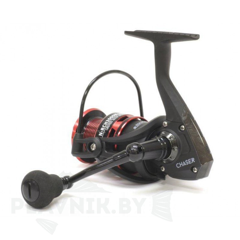 Namazu Chaser - спиннинговая серия, представленная в 4 самых востребованных типоразмерах: от 1000 до 4000 для самых популярных спиннинговых техник. Легкий корпус и сбалансированный ротор изготовлены из качественного композитного материала. Три модели в линейке имеют передаточное число 5,1:1, а самая большая - 5,5:1. Катушки получили усиленный фрикционный тормоз. Его расположение - переднее. Алюминиевая шпуля имеет большую вместительность (до 200 метров лески диаметром 0,20мм у модели с индексом 3000). Рукоять оснащена удобным кнобом из EVA. При необходимости ее можно переставить под другую руку. Катушки Chaser комплектуются запасной шпулей из пластика.