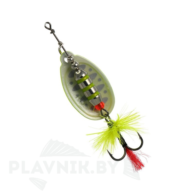 Главный элемент блесен – вращающийся лепесток. Он должен быть очень легок, сделан из латуни и обладать хорошими динамическими показателями при вращении в воде, что позволяет осуществлять длительную проводку при минимальной скорости движения, в зоне предполагаемой стоянки рыбы. Лепесток «заводится» сразу, как только блесна начинает движение. Лепестки загрунтованы и окрашены с двух сторон. С какой бы стороны хищная рыба не смотрела на приманку, ее расцветка остается одинаковой и привлекательной, что повышает интерес к блесне и, в итоге, приводит к результативной атаке.