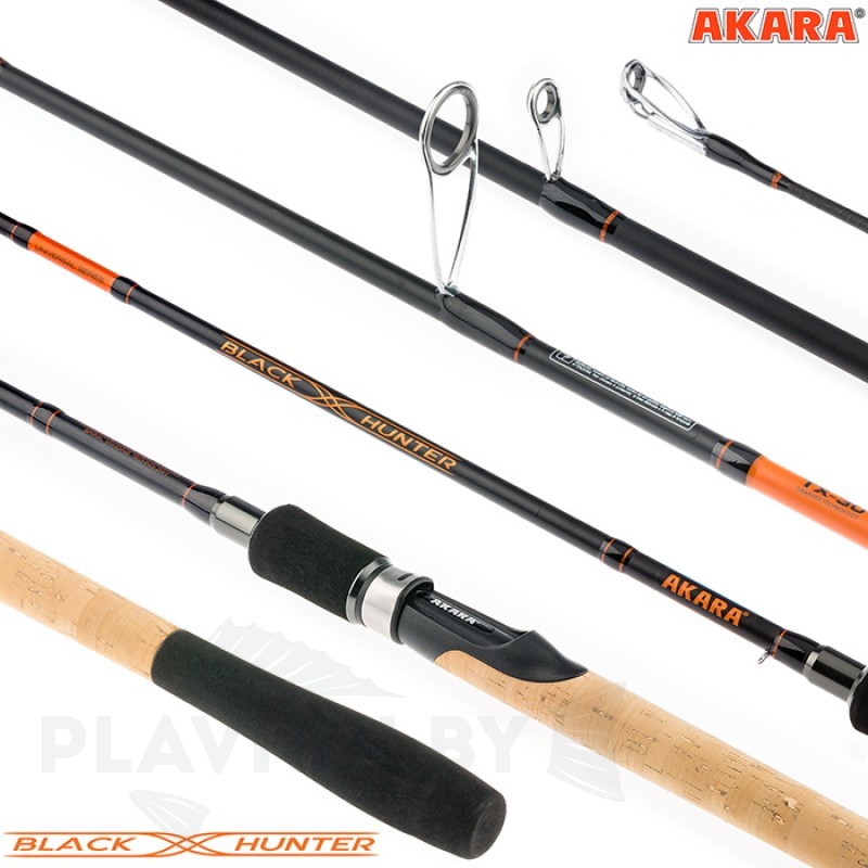 Новая линейка бюджетных спиннингов Akara Black Hunter. Несмотря на сравнительно небольшую цену, удилище получилось очень достойным. И самое главное, у нас наконец появилась длина 3 метра, что особенно востребовано у любителей береговой ловли. Эти длины есть в самых больших тестах 24-65 и 28-80 грамм. Вообще эта линейка очень широкая и начинается от 4-18г. Ну а заканчивается в тесте 28-80г. Поэтому можно подобрать спиннинг, практически под любые условия ловли, как с берега, так и с лодки. Материал, используемый в изготовлении ТХ-30, благодаря этому спиннинг вышел весьма легкий. Строй быстрый (Fast), идеально подходит для ловли джигом. Мы тестировали этот спиннинг на водоемах и можем смело сказать, что он вышел очень «звонким» и любая поклевка сразу передается в руку. Традиционное расположение колец из карбид кремния, позволяет не беспокоится о качестве заброса. Мы выполнили наш спиннинг в общем дизайне с катушкой Black Hunter, и на наш взгляд такой комплект, будет смотреться на рыбалке вполне гармонично.