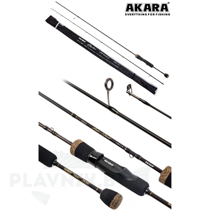 Угольный спиннинг Akara Lake Trout UL - спиннинг класса ультралайт разработанный специально для ловли прудовой форели. Благодаря сбалансированному бланку и средне – быстрому строю удилище позволяет справлять с крупной и сильной рыбой, и в то же время отлично работает с приманками класса УЛ. При производстве удилища используется графит Toray марки TX-20 (30-ton), что позволяет добиться поразительной легкости и прочности бланка. Облегченные пропускные кольца Kujira XR Long Super Hard ZrO2 (1600-1800H,kg/mm2) устанавливаются на удилище по технологии New Guide System, при этом удилище сохраняет свои изначальные свойства. Комбинированный катушкодержатель, разнесенная ЭВА рукоять.