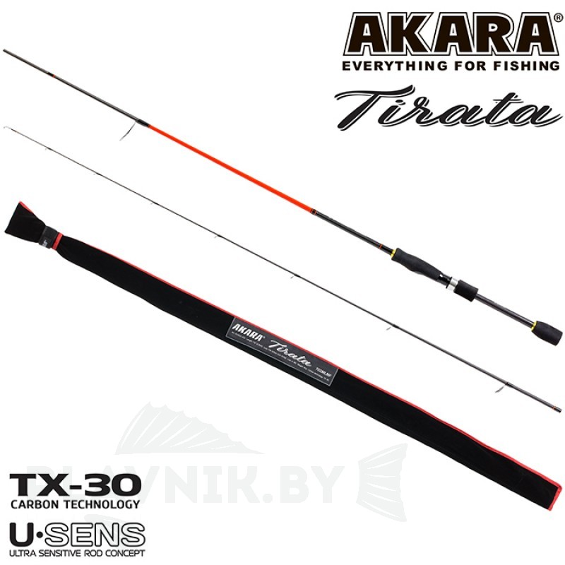 Akara Tirata - спиннинг успешно сочетает характеристики средне-быстрого строя и высокую чувствительность. Смягченного строя удалось добиться благодаря использованию при его производстве технологии U-SENS (бланк спекается при помощи высокомолекулярной порошковой смолы, количество связующего вещества при этом удается снизить на четверть). А так же специальной геометрии бланка. Смягченный средне-быстрый строй при таком тесте делает этот спиннинг универсальным по видам ловли и диапазону использования приманок. Обладая хорошими бросковыми характеристиками, с успехом используется для ловли на мелкие воблеры, для ловли твичингом и равномерной проводки. Хорошо зарекомендовал себя при ловле на мелкие вертушки, не мелкой рыбы: голавля, форели, хариуса, язя и других осторожных хищников. Может использоваться для ловли на лайт-джиг, интересен при ловле на отведенный поводок.Кольца Kujira Super Contact ZrO2. Разнесенная EVA ручка. Материал - графит Toray марки TX-30 (40-ton)