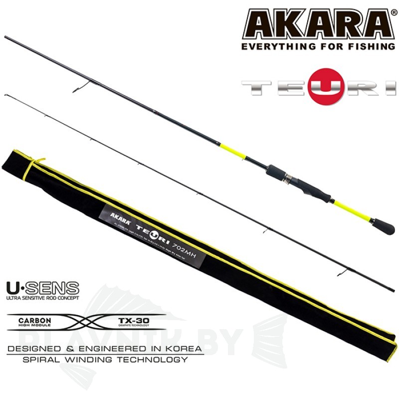 Обновление в модельном ряду угольных спиннингов от Akara - серия Teuri. В линейке представлены, как спиннинги для ультра-лайта, так и удилища для тяжелого джига (heavy jig). Благодаря использованию графита концерна Toray TX-30 (40-ton) и инновационным технологиям плетения бланка спиннинг обладает повышенной чувствительностью при проводке, что делает его незаменимым при контактных видах ловли: джиг, твич, ловля на техасскую оснастку и с отводным поводком. При производстве бланка спиннинга использована технология UPIT. Расстановка колец произведена по технологии New Guide System, позволяющая оптимально расположить кольца на бланке, определить их количество и размер (вес). Облегчённые кольца Kujira XR Long Super Hard ZrO2 (1600-1800H, kg/mm2).
