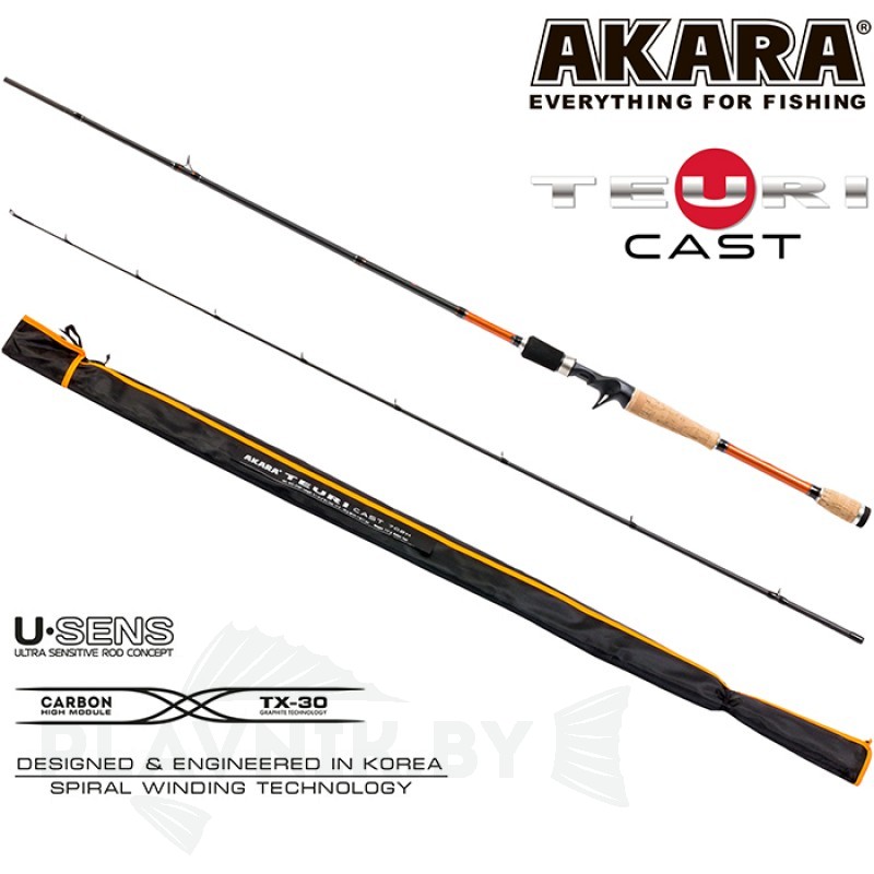 Akara Teuri Cast H – спиннинг штекерный (2 – ух составной) для ловли с мультипликаторной катушкой. Новинка 2019 года в обновленной линейке спиннингов Akara Teuri. Бланк спиннинга изготовлен по новейшим технологиям из графита концерна Toray TX-30 (40-ton). Благодаря инновационным технологиям плетения бланка спиннинг обладает повышенной чувствительностью при проводке, что делает его незаменимым при контактных видах ловли: джиг, твич, ловля на техасскую оснастку и с отводным поводком. При производстве бланка спиннинга использована технология UPIT. Расстановка колец произведена по технологии New Guide System, позволяющая оптимально расположить кольца на бланке, определить их количество и размер (вес). Облегчённые кольца Kujira XR Long Super Hard ZrO2 (1600-1800H, kg/mm2).