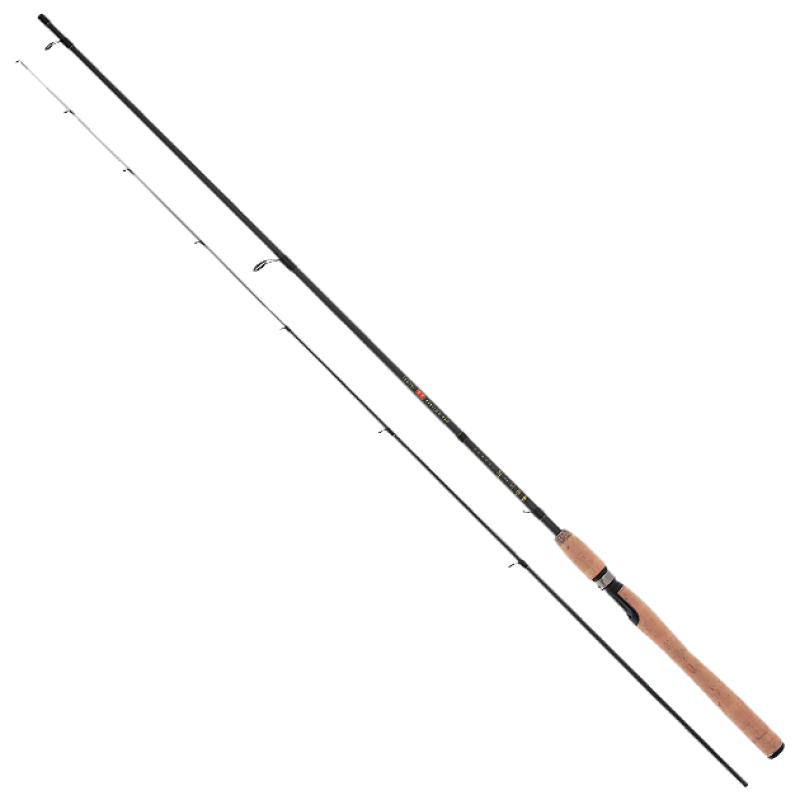 Хорошо сбалансированный спиннинг со средне - быстрым строем. Комбинированный хлыст с мягкой монолитной вставкой служит повышению чувствительности при проводке мелких вертушек. Стык «хлыст в комель» позволяет придать удилищу дополнительную мощность, которой порой так не хватает моделям этого класса. Кольца SiC на легких ножках типа «ласточкин хвост» и облегченные кольца на хлысте. Для удобства перехода, при смене точки ловли, предусмотрено кольцо для крепления блесны. Удобная профилированная пробковая рукоять, размером Ѕ, и специальный катушкодержатель позволяют сделать спиннинг естественным продолжением руки. Упаковка - плотный нейлон, облегчающий складывание после ловли.