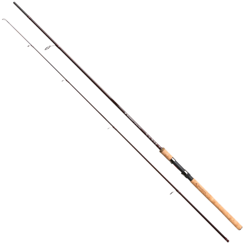 Штекерный углепластиковый спиннинг с медленным строем. Подходит для ловли на воблеры и колеблющиеся блесны. Колена соединяются комель в хлыст. Кольца на V-образных креплениях со вставками SiC. Есть колечко для крепления крючка приманки при переноске снасти. Классический катушкодержатель. Рукоятка пробковая, прямая. Упаковка – матерчатый чехол.