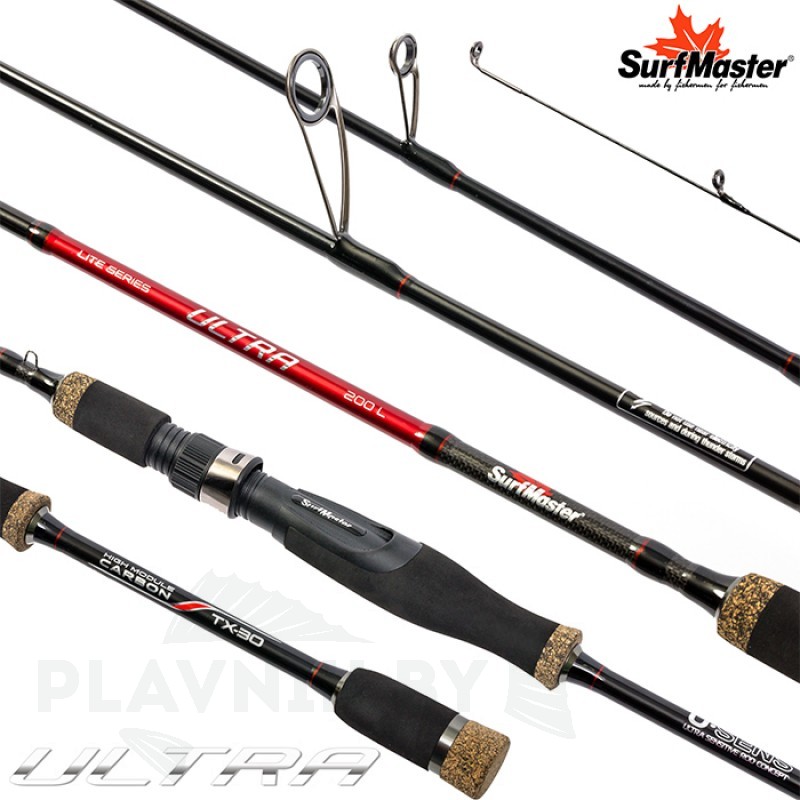 Surf Master Ultra L – спиннинг штекерный угольный (2 – ух составной). Новинка 2019 года. Быстрый строй спиннинга и вклееная вершинка позволяют производить точные и дальние забросы минимальных по весу приманок, а также их анимировать и отслеживать самые осторожные поклевки. Благодаря использованию графита японского концерна Toray TX-30 (40-ton) и инновационным технологиям плетения бланка спиннинг обладает повышенной чувствительностью при проводке, что делает его незаменимым при контактных видах ловли: джиг, твич, ловля на техасскую оснастку и с отводным поводком. При производстве бланка спиннинга использована технология UPIT. Расстановка колец произведена по технологии New Guide System, позволяющая оптимально расположить кольца на бланке, определить их количество и размер (вес). Облегчённые кольца Kujira XR Long Super Hard ZrO2 (1600-1800H, kg/mm2).