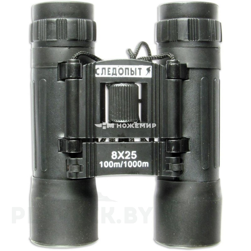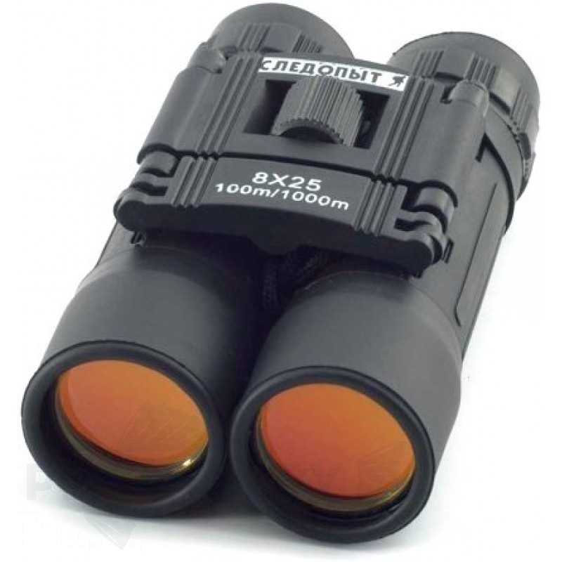 Бинокль с 8-кратным увеличением. Диаметр линзы объектива: 25 мм. Диаметр выходного зрачка: 3.13 мм. Линейное поле зрения на расстоянии 1000 м: 100 м. Roof-призмы. Регулировка расстояния между зрачками. Центральная фокусировка. Резиновые наглазники. Металлический обрезиненный корпус. Защита от влаги и пыли. Размеры: 65x35x110 мм. Вес: 171 г.