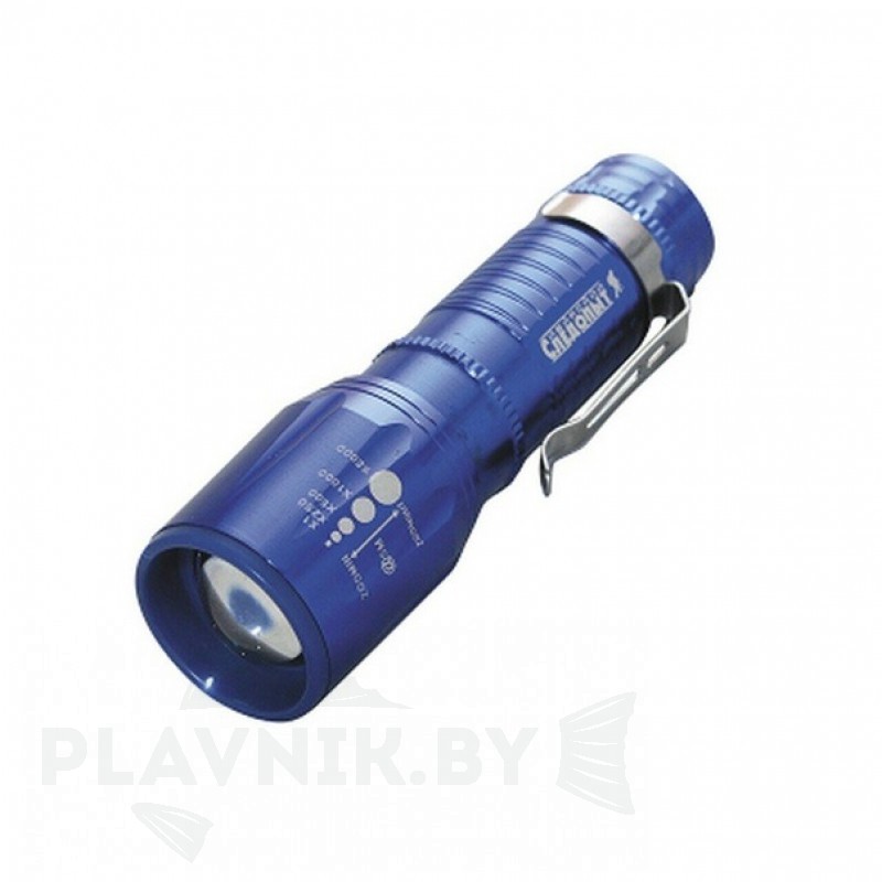 Питание фонаря осуществляется за счет трех батареек типа ААА. Функция ZOOM позволяет фокусировать пучок света.