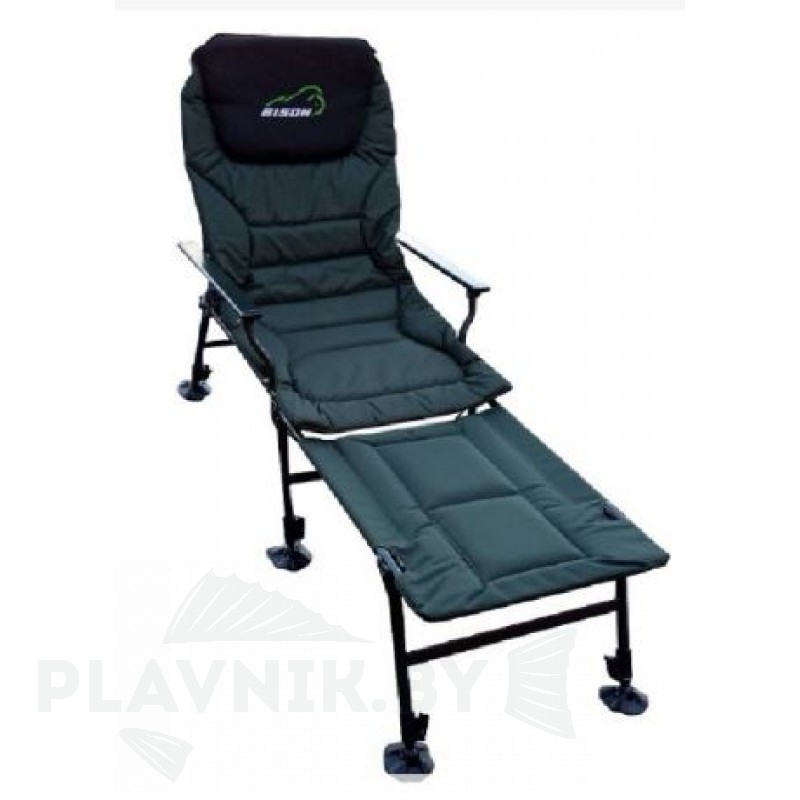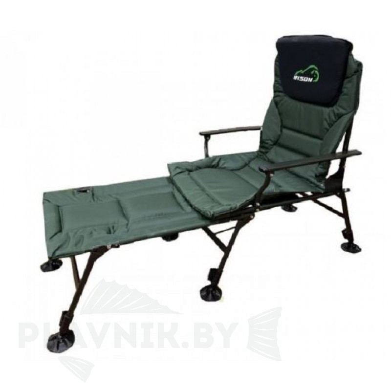 Карповое кресло с регулируемыми ножками по высоте и наклону. Устойчиво стоит на неровных поверхностях. Спинка с регулируемым наклоном, можно полностью разложить и использовать в качестве раскладушки. В подголовнике расположена дополнительная вставка-подушка с мягким наполнителем. Кресло оснащено мягкими накладками на трубы каркаса. Легко складывается и переносится. Нижняя часть спереди усилена дополнительными трубками, что позволяет выдерживать большие вертикальные нагрузки. Каркас изготовлен из стальных трубок диаметром 19-22 мм. Пятаки на ножках — 7 см. Спинка регулируется при помощи фиксаторов-защелок, намного быстрее можете регулировать в отличии от фиксаторов- закруток.
