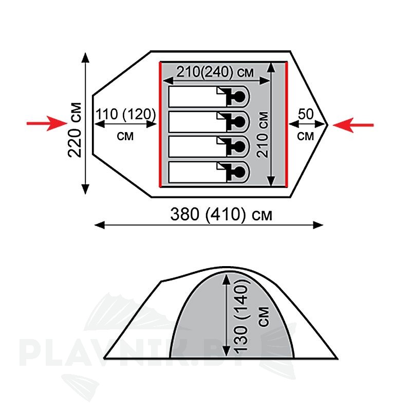 Предназначена для ночлега 3-х человек. Подходит для любого времени года. Двухслойная туристическая палатка окрашена в серый цвет с ярко-красными вставками, которые позволяют ее найти в условиях плохой видимости.