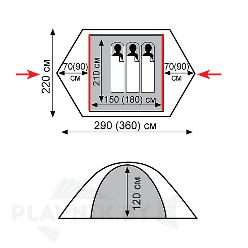 • два дополнительных тамбура, увеличивающих внутренний объём палатки, дают возможность держать снаряжение внутри;