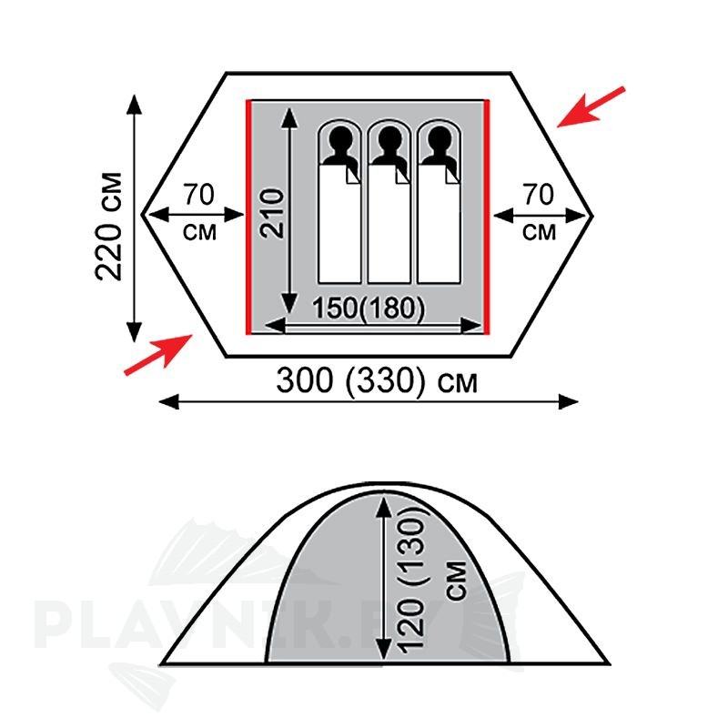 Двухслойная палатка с двумя входами и двумя тамбурами