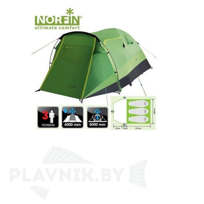 NORFIN Bream 3 -Палатка купольного типа для путешествий с большим багажом.Вместительный тамбур, три входа в палатку, просторная спальня все это, при относительно умеренном весе и компактности, позволяет быть этой модели привлекательной для путешественников.