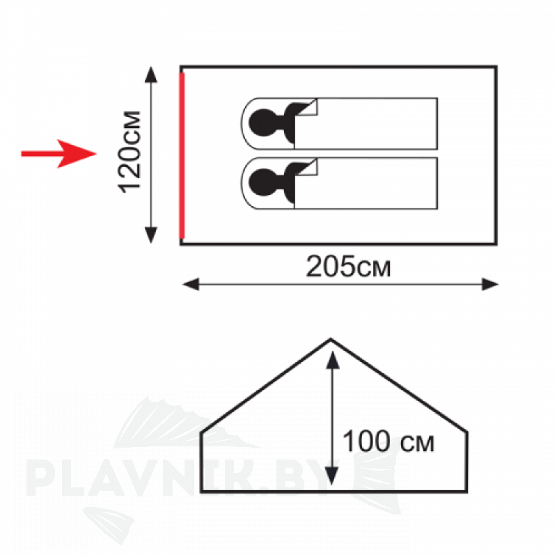 Палатка однослойная. Единственный вход - двойная дверь с москиткой.