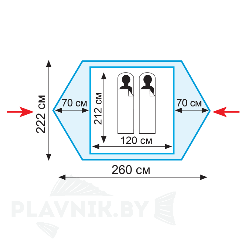 - Имеет два входа и два тамбура, которые можно использовать для хранения рюкзаков, обуви и прочих походных принадлежностей.