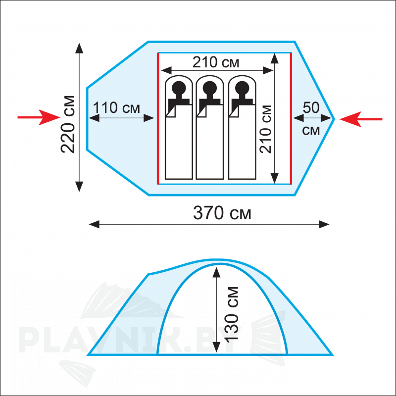Комплектуется | Cтальные колышки, реммкомплект, оттяжки |