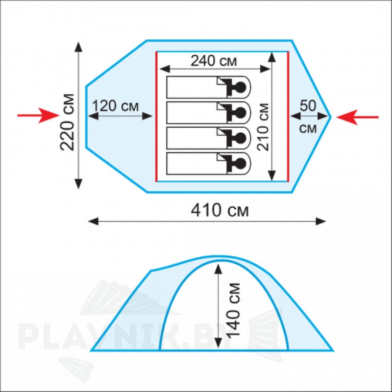 Внешний тент палатки устойчив к ультрафиолетовому излучению