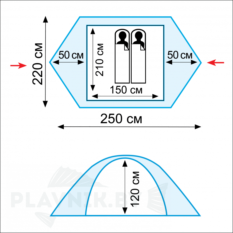 Внешний тент имеет пропитку, задерживающую распространение огня - Два вентиляционных клапана