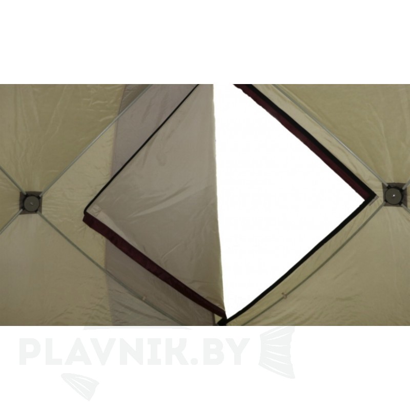 Палатка рассчитана для компанейского отдыха в холодное время года. Тепло внутри сохраняется долго. Можно рыбачить с комфортом в течение длительного времени. Полуавтоматический каркас экономит время на сборке палатки.