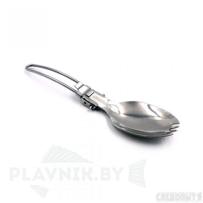 Удобная складная ложка-вилка из нержавеющей стали с фиксатором.