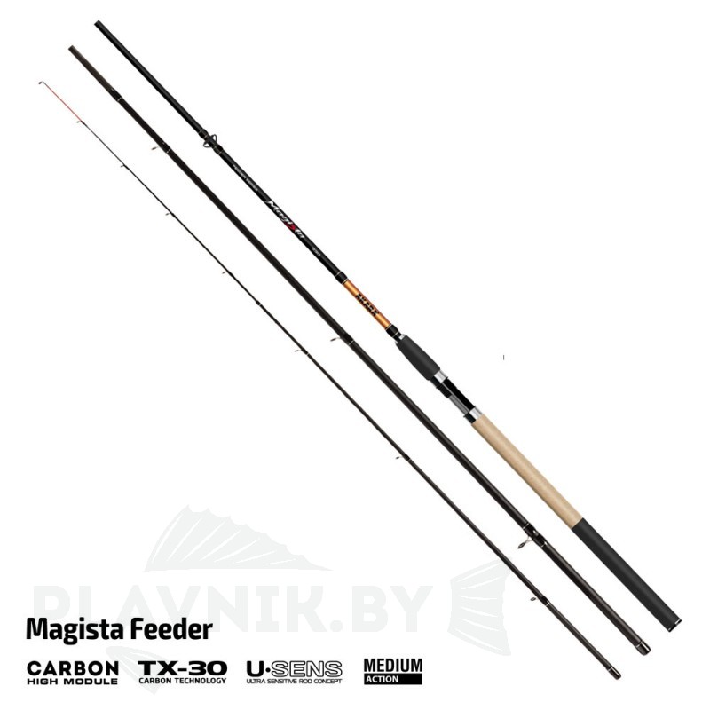 Magista Feeder – это расширение уже известной серии спиннинговых удилищ и рыболовных катушек, созданная по рекомендациям обладателей ранее выпущенных изделий этой серии. Удилища имеют строй Medium (средний) и предназначены для работы с тестом до 120 гр, 150 гр, 180 гр. Бланки удилищ Akara Magista Feeder выполнены из высокомодульного карбона TX-30 про-изводства Японского концерна Toray. Бланк удилища оснащен кольцами Kujira с покрытием оксида циркония, что позволяет не повреждать леску при ее использовании во время заброса кормушки или вываживании рыбы. Цельная рукоять удилища выполнена из пробки и неопрена и оснащена надежным катушкодержателем.