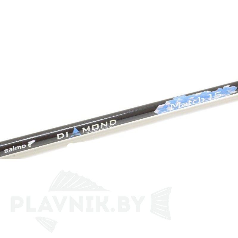 Представленная удочка подойдет для охоты на осторожную рыбу, что не приближается к берегу. Эксперты Салмо наделили модель отменными бросковыми качествами и хорошей сенсорикой. Трехсекционный карбоновый бланк прочный, позволяет полностью контролировать вываживание и отслеживать деликатные поклевки. При рабочих габаритах в 3,9 м весит модель всего 195 гр, транспортная длина равны 137 см. Мощность, которой наделено матчевое удилище от бренда Salmo Diamond Match с индексом 15 390, дает возможность манипулировать весящей от 5 до 15 гр оснасткой. Покрытие рукояти сочетает износостойкий нескользящий ЭВА и натуральную пробку, что обуславливает уверенный хват. Фурнитура SiC установлена на высоких лапках, что не даст леске прилипнуть даже в дождь к бланку.