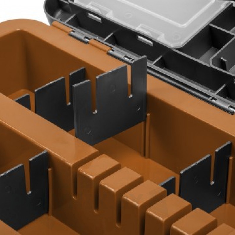 Ящик рыболовный зимний двухсекционный торговой марки Helios, изготовленный из ударопрочного, морозостойкого и в то же время легкого пластика, обеспечивает надежное хранение и транспортировку рыболовных снастей. Благодаря объему 19 литров, ящик вместит очень много полезных снастей для рыбалки. Основной отсек предназначен для переноски рыболовных снастей, термоса, так же удобен для перевозки улова. На внутренней стороне крышки размещены 4 отделения с полупрозрачными крышечками для хранения мелких аксессуаров. Удобный отсек со съемными перегородками позволяет разместить зимние удочки. Надежные и прочные замки не позволят изделию самопроизвольно открыться, а удобный наплечный ремень поможет комфортно его транспортировать. Пластиковый каркас выдерживает низкие температуры до -40°С, не пропускает и не впитывает воду. Мягкое незамерзающее сиденье на крышке ящика, аккумулирующее тепло, позволит рыболову комфортно рыбачить с ящика долгое время. На дне ящика расположены специальные насечки против скольжения по льду. Летом подобный ящик несомненно пригодится для береговой рыбалки, когда необходимо иметь все снасти под рукой.