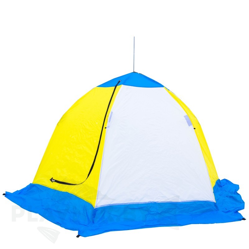 Крепление зимней рыболовной палатки ко льду производится растяжками от дуг каркаса.