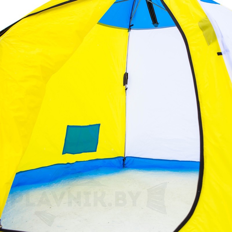 В верхней части купола рыболовной палатки имеется вентиляционное окно на молнии.