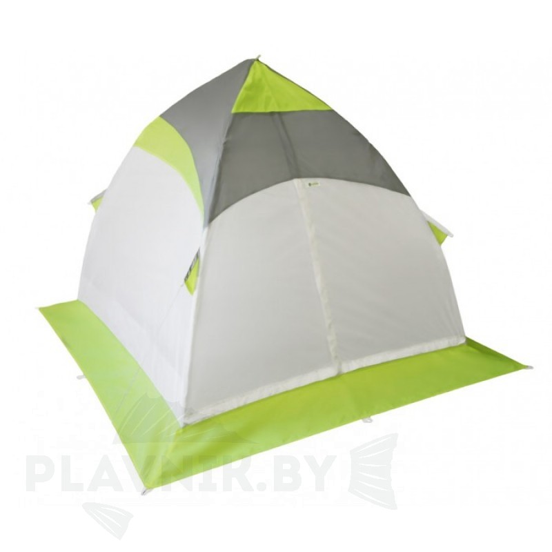 Наличие вентиляционного клапана на утяжке позволяет регулировать приток свежего воздуха и предотвращает образование конденсата. В дополнении к клапану снаружи предусмотрен регулируемый козырек, который защищает клапан от попадания осадков Изнутри палатка снабжена карманами для вещей и удильников, а также навесной полкой под потолком. Окраска палатки выполнена в ярко-салатовом цвете и даже в самый пасмурный день в ней будет всегда светло и уютно. Для безопасности в ночное время на креплениях для растяжек предусмотрены светоотражающие элементы.