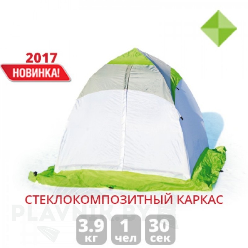 Тент палатки изготовлен из современных высокотехнологичных тканей с водонепроницаемым покрытием, обеспечивающих надежную защиту от атмосферных осадков, сильного ветра и мороза.