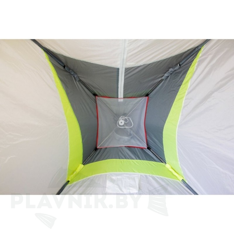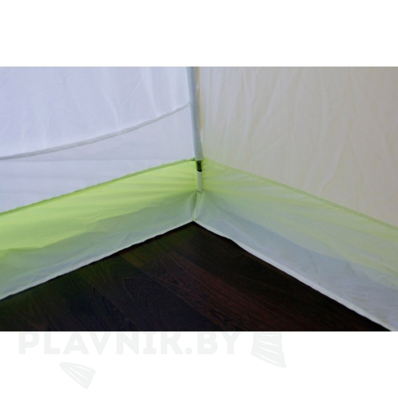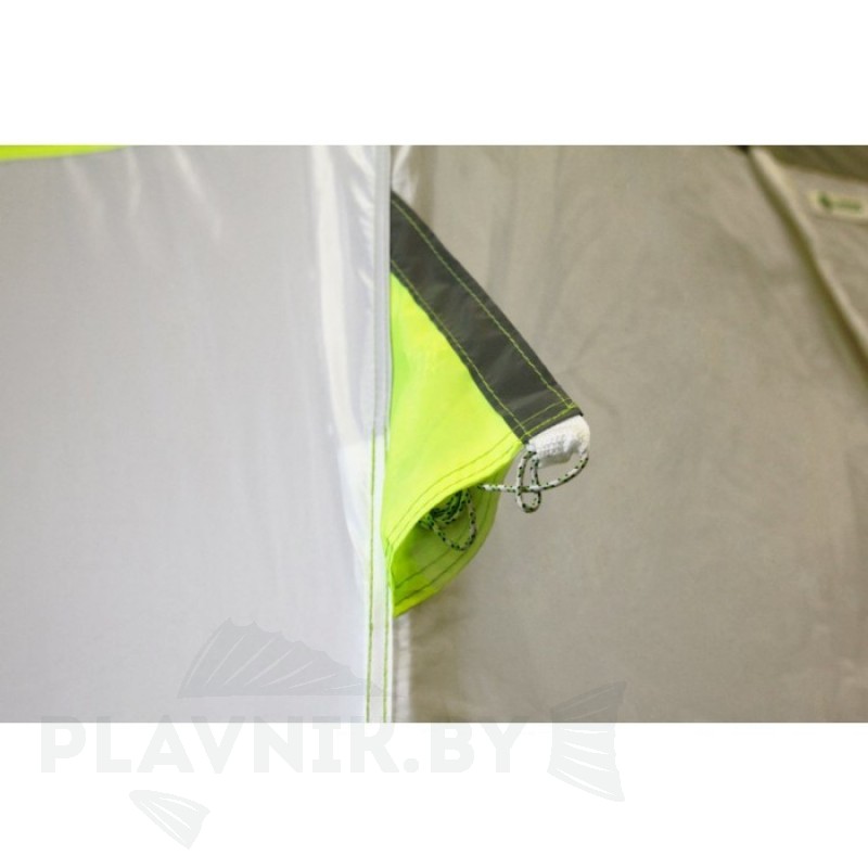 Окраска палатки выполнена в ярко-салатовом цвете, и даже в самый пасмурный день в ней будет всегда светло и уютно. Для безопасности в ночное время предусмотрены светоотражающие окантовки ребер и растяжки.